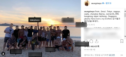 2017년 12월 9일 승리 초호화 생일 파티에 VIP로 참석했었던 적이 있었습니다. 제일 친하면 안되는 빅뱅 멤버와 친했던 타일러 권입니다.