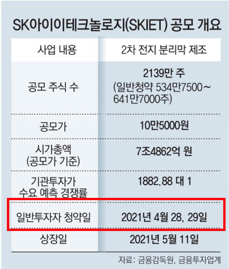 SKIET 청약이 내일 21년 4월 28일부터 시작입니다.