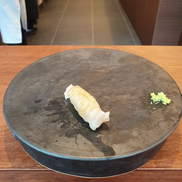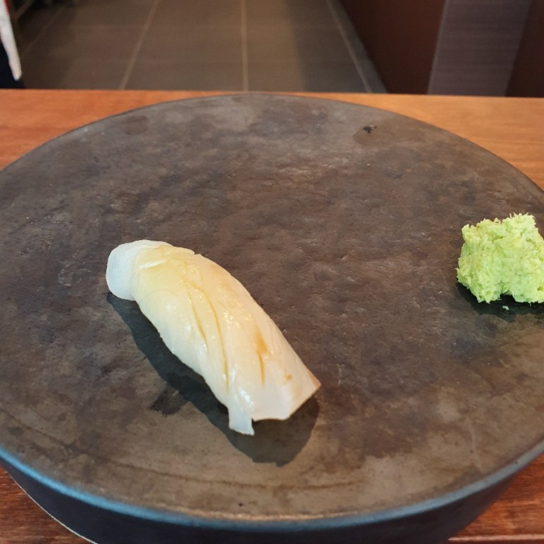 껍질이 붉은 홍새우로 만든 초밥으로 일반 새우 초밥보다 훨씬 탱탱하고 큰 새우를 즐길 수 있었어요. 오래 씹을수록 단맛이 확 올라오는게 일반 새우초밥과는 다른 차원의 맛이였습니다.