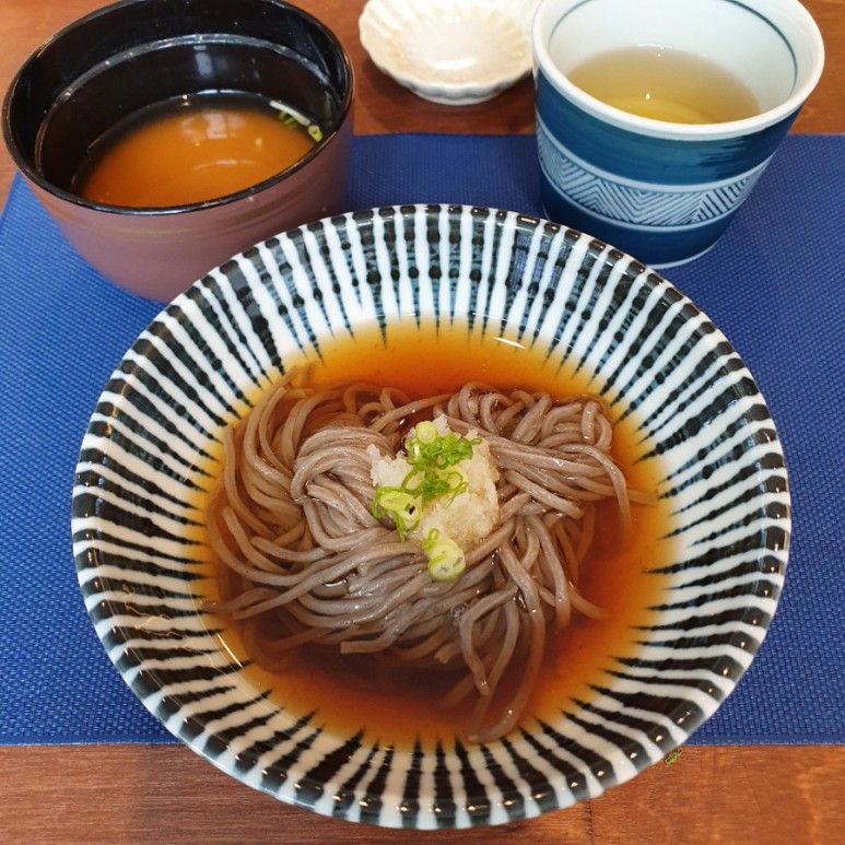 후식으로 나온 냉모밀이에요. 제가 좋아하는 냉모밀이기 때문에 국물부터 한입했는데... 와우!!! 쯔유가 정말 맛있었어요. 일반 분식점에서 파는 쯔유랑은 차원의 맛이었어요. 깊이가 다르더라구요!