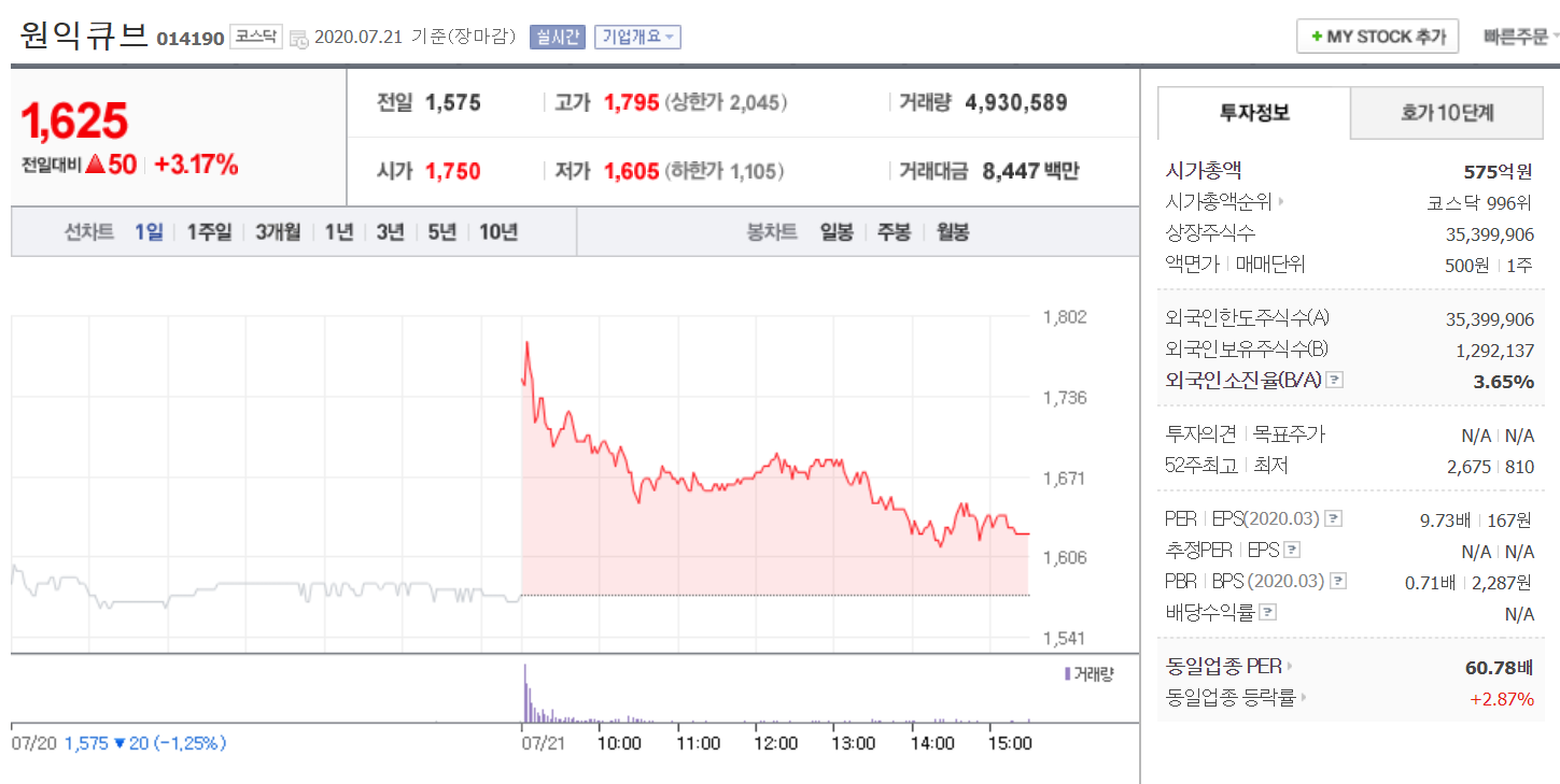 원익큐브의 주가 방향을 함께 느껴보시기 바랍니다.
