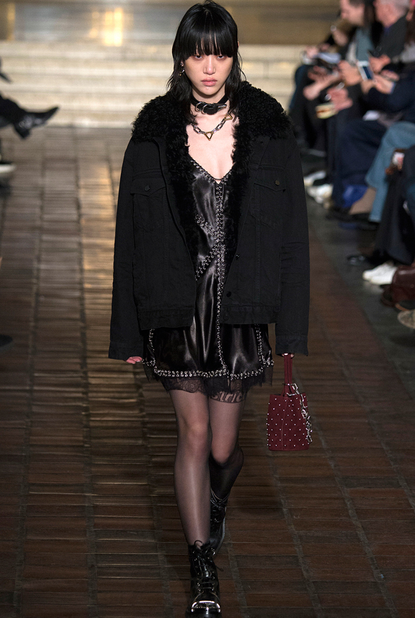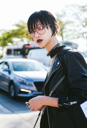올블랙으로 각 아이템이 펑키하면서 섹시한 감성을 보여주는 코디가 아주 매력적입니다. 쵸크와 틴트안경, 목걸이 등의 악세서리를 잘 활용하여 섹시하면서도 동양적인 매력을 보여주는 모델 최소라입니다.