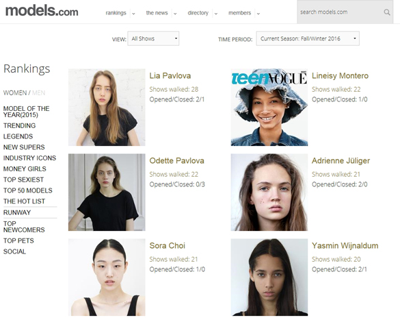 유명 패션모델 정보 사이트인 모델스 닷컴(models.com)에서는 가장 영향력 있는 신인모델 TOP 10에 선정되었으며 2017년 5월 여자 세계모델 랭킹에는 'TOP 50'에 올랐습니다. 한국계 모델이 이 랭킹 안에 든 것은 혜박, 김다울, 수주에 이어 4번째이며, 2018년 8월 기준 명단의 유일한 한국인이었습니다.