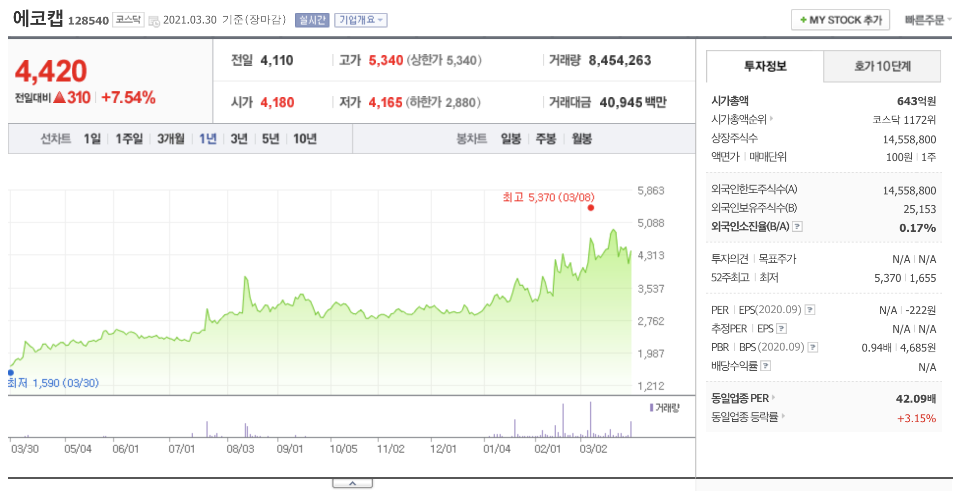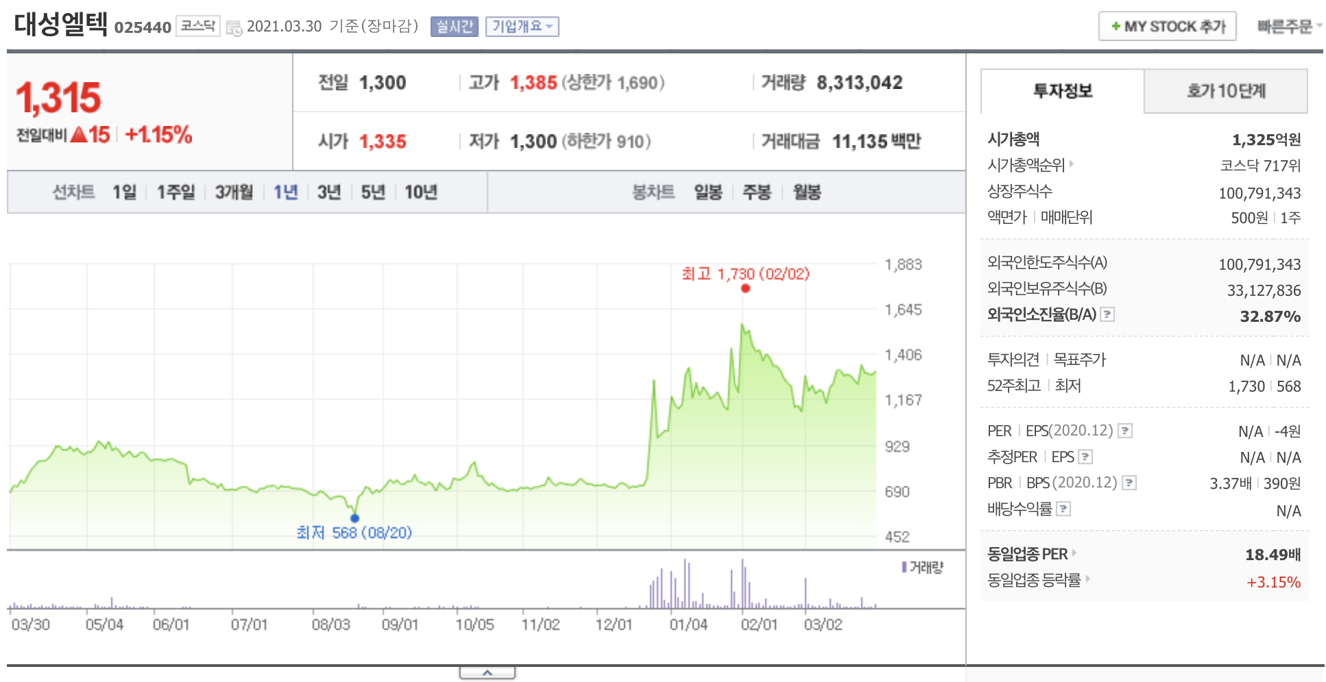 판매하는 신재생에너지사업에 진출하였습니다. 최대주주는 (주)대성엠텍(10.22%)입니다.