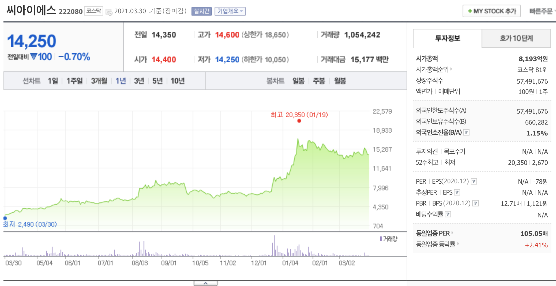 씨아이에스 (222080)