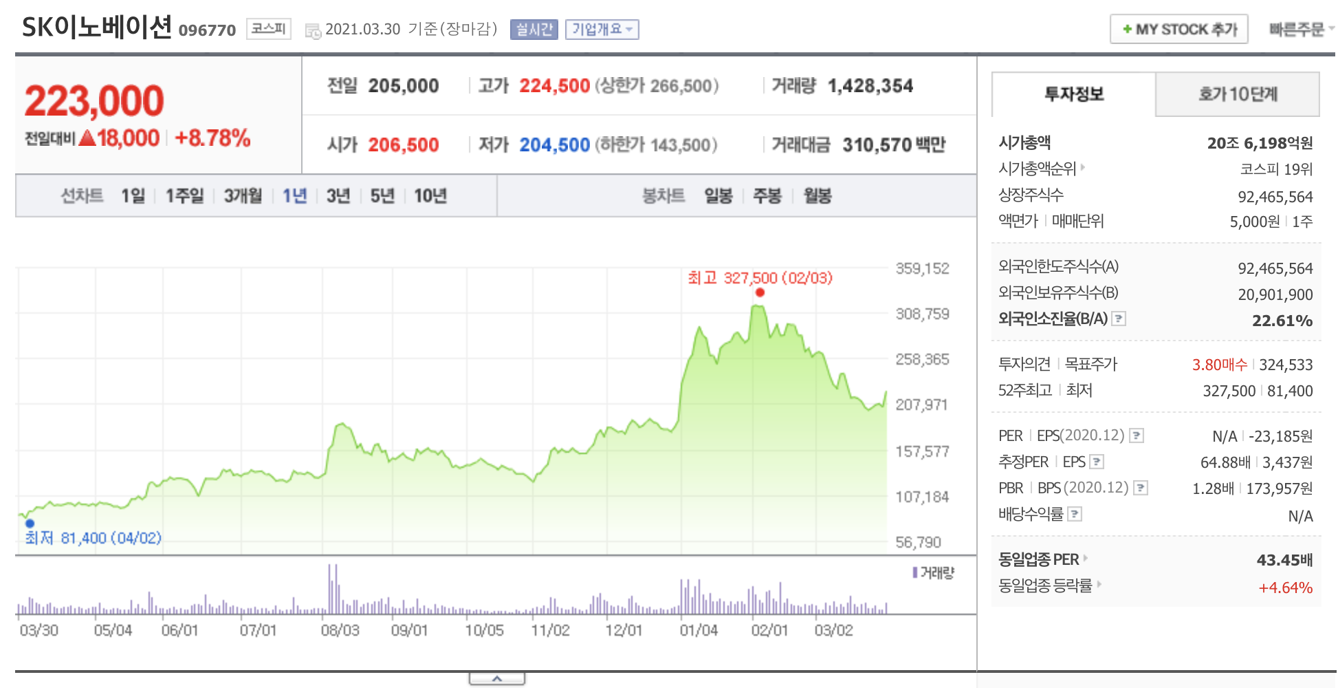 오늘 SK이노베이션이 제대로된 반등이 있어서 기쁜 올라라올랏입니다.